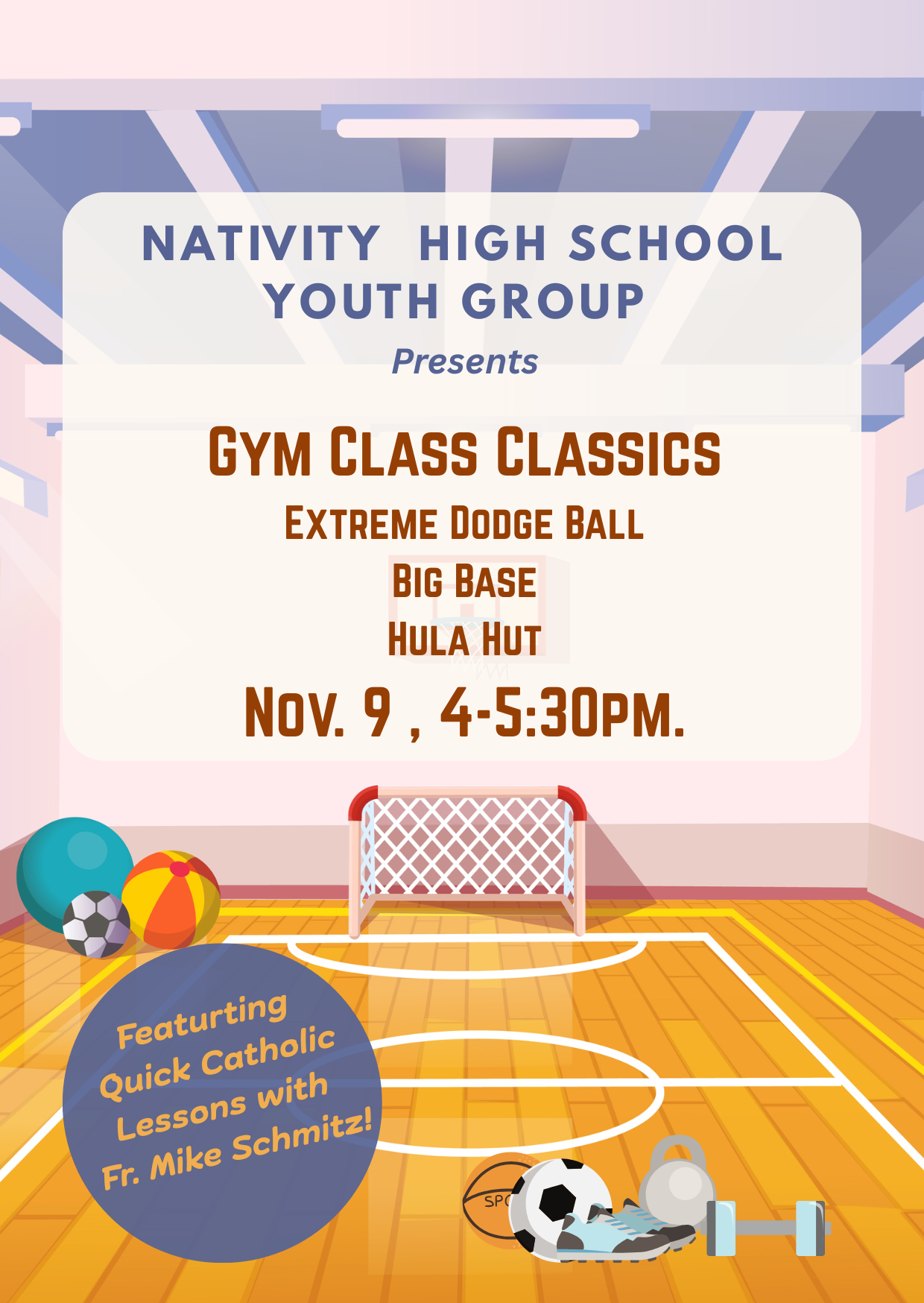 Next Event: November 9 , 4-5:30 PM featuring Quick Catholic Lessons by Father Mike Schmitz & Gym Class Classics!
