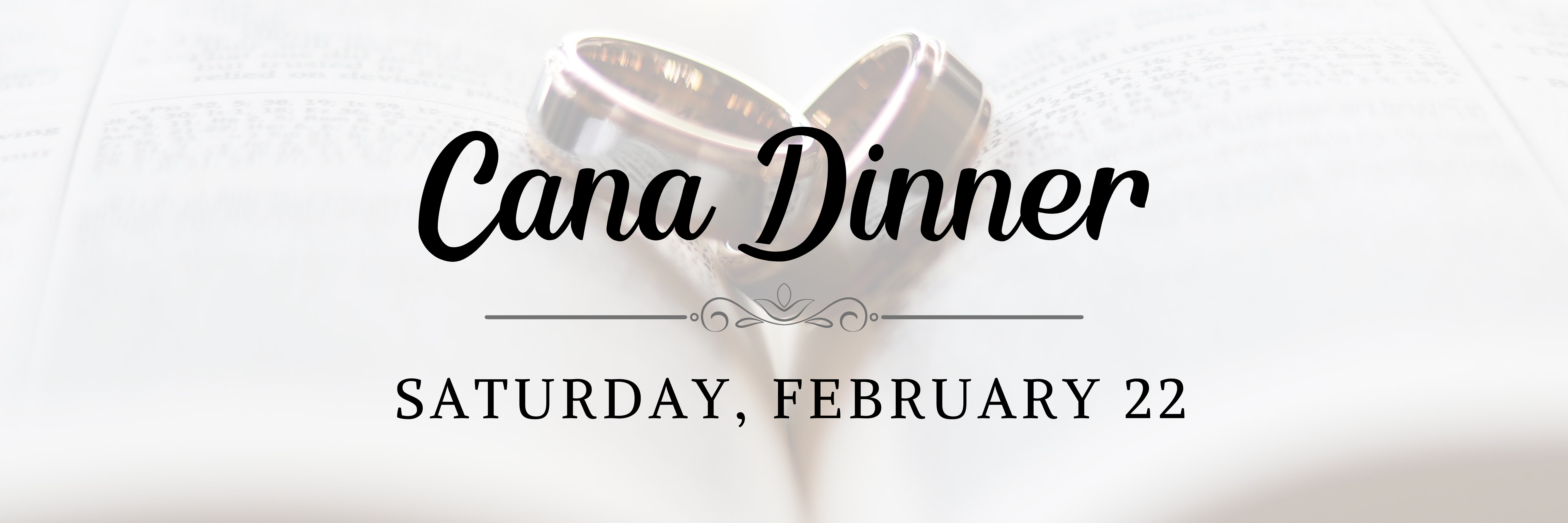 Join us for the Cana Dinner on Saturday, February 22nd! This will be a joyous evening of fellowship, love, and inspiration! Join us for drinks, dinner, a talk by Nell and Anthony O'leary, and a marriage blessing. Celebrate your marriage with an evening designed to nourish your relationship and your faith! Inspired by the Wedding at Cana, this special event offers married couples a chance to reconnect, reflect, and strengthen their bond in a supportive, faith-filled community.