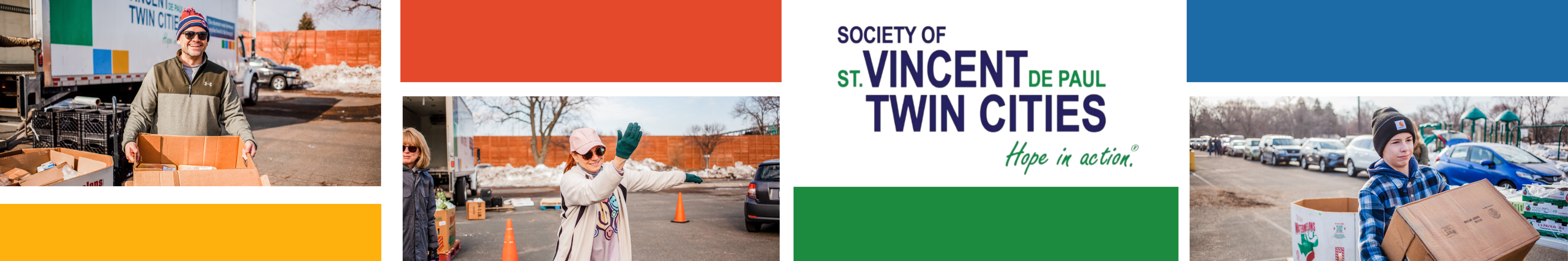 - Volunteer: SVDP hosts a Free Food Giveaway on the second and fourth Saturday of each month in the Nativity of Mary parking lot. Volunteers are needed for packing food at the Twin Cities SVDP warehouse the Friday before as well as the morning of the food giveaway to direct traffic, greet, and place food in cars.