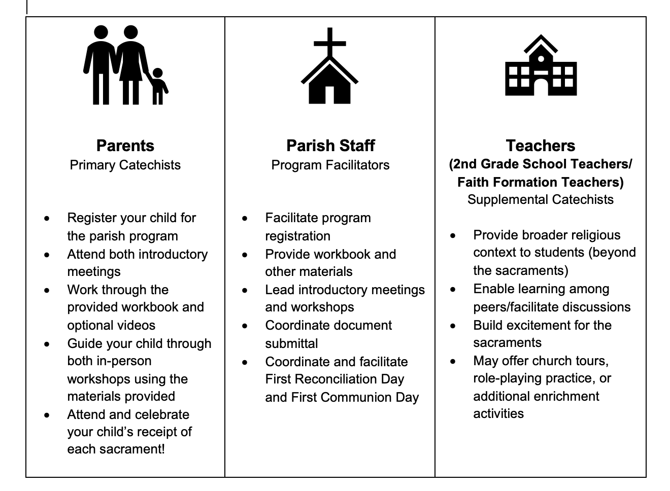 Below is a description of all of the various supports your child will have on these important next steps in his or her faith journey.